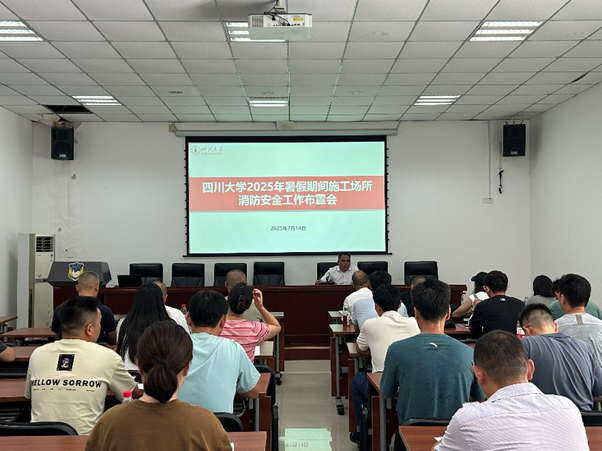 为贯彻落实教育部、省教育厅及学校关于消防安全管理工作的要求,2025年7月14日14:30,党委保卫部(处)在望江校区保卫处三楼会议室组织召开四川大学2025年暑假期间施工场所消防安全工作布置会,三校区施工单位、监理单位及相关二级单位消防安全专兼职干部参加。