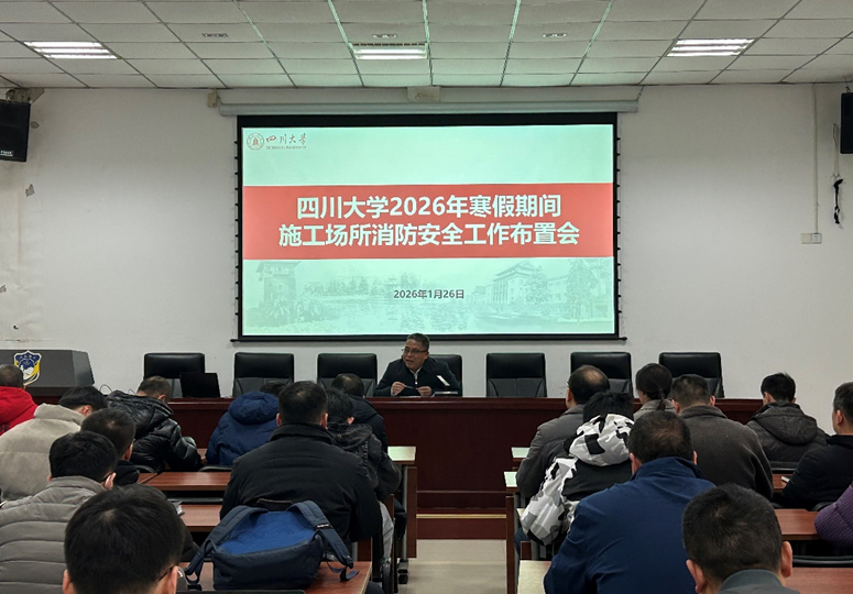 为贯彻落实教育系统关于加强建筑及施工消防安全工作的要求以及四川省安委会、四川省教育厅开展消防安全风险排查整治“冬春行动”的相关要求,2026年1月26日9:30,党委保卫部(处)在望江校区保卫处三楼会议室组织召开四川大学2026年寒假期间施工场所消防安全工作布置会,四校区施工项目建设单位(二级单位)消防安全专(兼)职干部及施工单位、监理单位相关负责人参会。